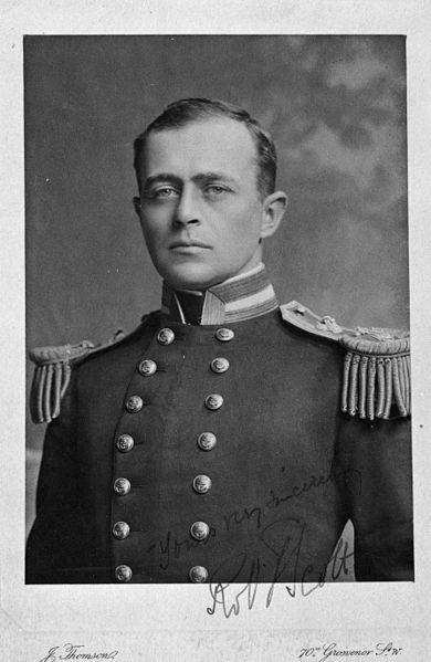 Robert Scott wurde am 06. Juni 1868 in England geboren. Er war körperlich ein eher schwächliches Kind und zudem sehr zurückhaltend. Dies änderte sich, als er die Aufnahmeprüfung zur britischen Royal Navy schaffte, er wurde selbstbewusster und diente von nun an auf den verschiedensten Schiffen. Die erfolgreiche Laufbahn wurde aber abrupt unterbrochen als sein Vater starb und die Familie nun vom Einkommen von Robert Scott abhängig wurde. Da ihm die Royal Navy zu dieser Zeit kaum Aufstiegsmöglichkeiten bot, um damit mehr Geld zu verdienen, bewarb sich Robert Scott für den Posten eines Expeditionsleiters und erhielt tatsächlich bald sein erstes eigenes Kommando.
