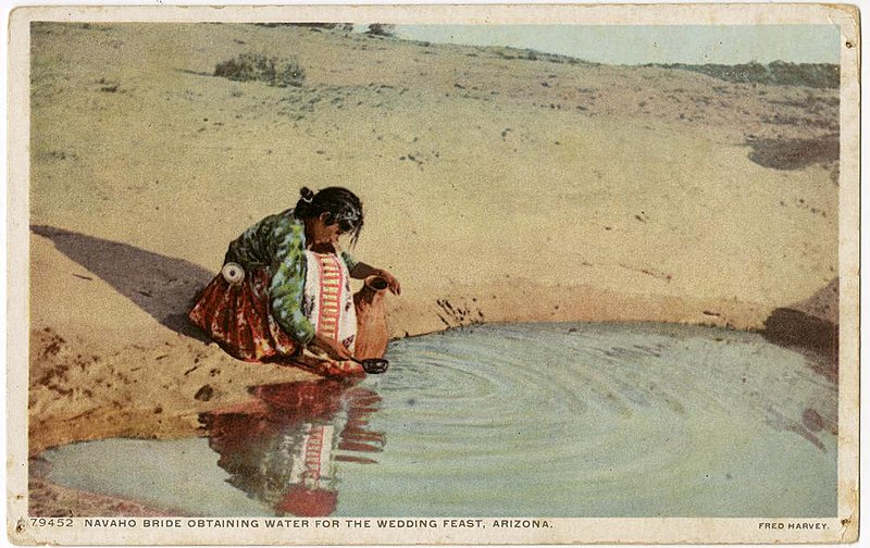 Die drei Frauen füllten ihre Eimer und gingen heim. Der Greis ging langsam hinter ihnen her. Die Eimer waren schwer, und die abgearbeiteten Hände schwach. Deshalb machten die Frauen eine Ruhepause, denn der Rücken tat ihnen weh.