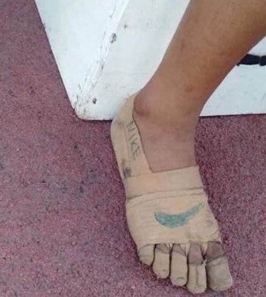 Rhea Bullos ist in Gedanken versunken. Während bei den Teilnehmern die Anspannung steigt, ist das 11-jährige Mädchen mit anderen Dingen beschäftigt. Da sie sich keine Laufschuhe leisten kann, muss sie kreativ sein, um ihre Füße zu schützen. Sorgfältig umwickelt sie Fersen, Ballen und jeden einzelnen Zeh mit einem Klebeband. Als sie die Laufbahn betritt, ist ihr Werk fast vollendet – bis auf ein wichtiges Detail. Das Mädchen malt sich das Logo des Sportartikelherstellers Nike auf den selbstgebastelten Fußschutz. In ihrer Vorstellung hat sie die besten Laufschuhe!